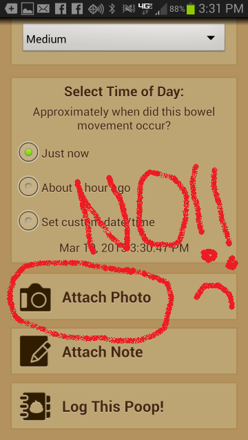 And while I was waiting for the screenshot of the tender breasts to show up in my email, I was still fixating on the “constipation” graphic…and wondered if there was an app to track bowel movements (I am so ladylike…I know).